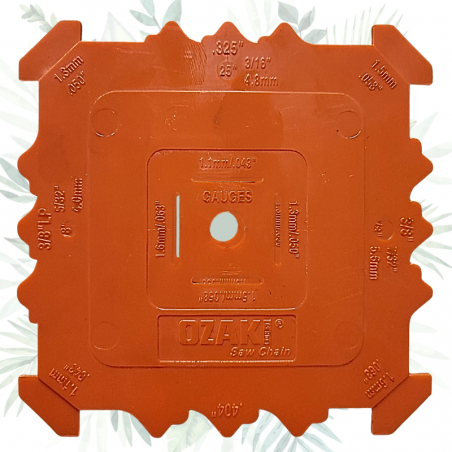 Il permet de vérifier le pas et la jauge de la chaîne, mais aussi de déterminer le diamètre de lime adapté à l’affûtage.