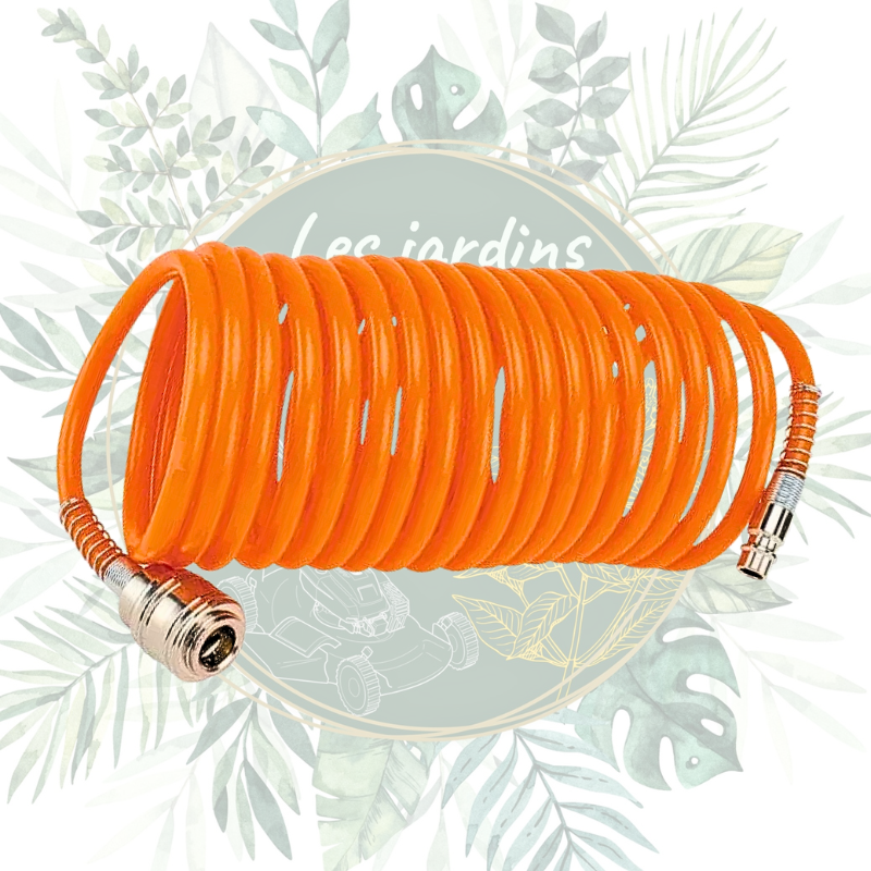 Son renfort en spirale assure une bonne mémoire de forme, permettant au tuyau de reprendre automatiquement sa configuration après utilisation et de rester parfaitement organisé sur le poste de travail.